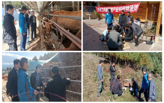 期间,特派团一行深入到兰坪县滇源牧业有限公司肉牛养殖科普示范基地、兰坪县悦丰农业开发有限责任公司、怒江云之岭蜂之道科技有限公司中蜂养殖示范点,对各公司养殖的牛、羊、蜂进行了实地调研和现场培训、指导。