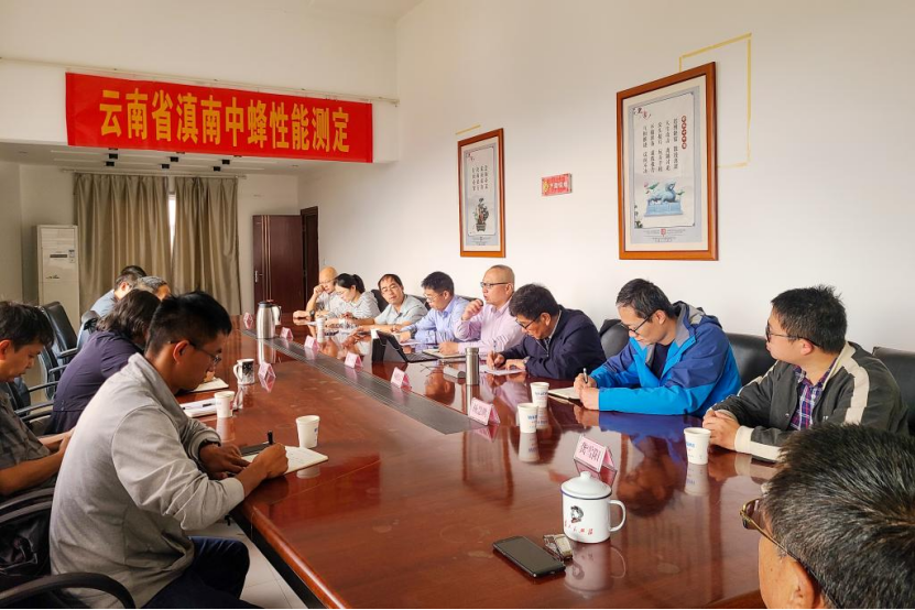 蚕蜂研究所,同所领导和研究人员开展座谈交流,对接和商讨现阶段蜜蜂遗传资源普查工作开展推进情况以及滇南中蜂地方品种保护和开发利用情况。会上专家组就滇南中蜂性能测定相关任务作了安排和交流。蚕蜂所副所长朱建荣表示,将全力协助做好滇南中蜂性能测定,助力全国第三次蜜蜂遗传资源普查工作,为推动我省养蜂事业高质量发展做出更多贡献。