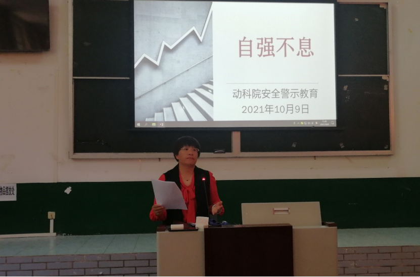 由于近半年来2018级动科专升本学生连续违纪次数较多,为了让同学们强化安全意识,绷紧安全之弦,不要拿自己的前途命运当儿戏,保证最后一年的大学顺利完成,2021年10月9日中午,彩票开奖网 专门为这个班召开主题为“自强不息”的安全主题教育班会。彩票开奖网 段新慧副书记主持主讲,院团委老师、辅导员以及全班同学参加大会。