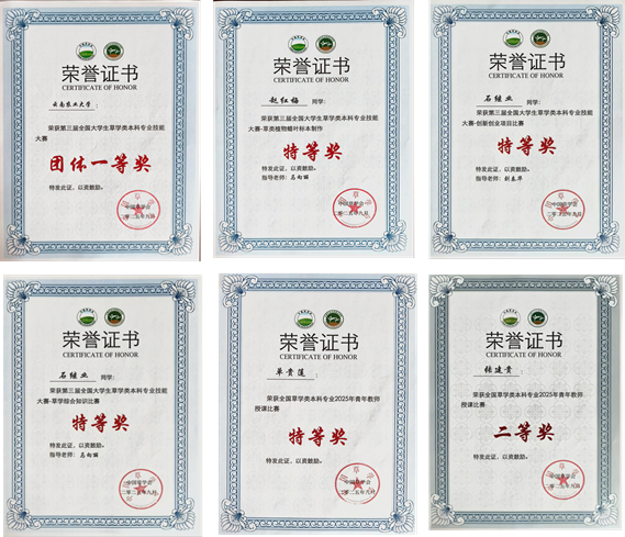 此外,在全国草学类本科专业2025年青年教师授课比赛中,学校单贵莲老师荣获特等奖,张建贵老师荣获二等奖,体现了实时彩票开奖查询网站